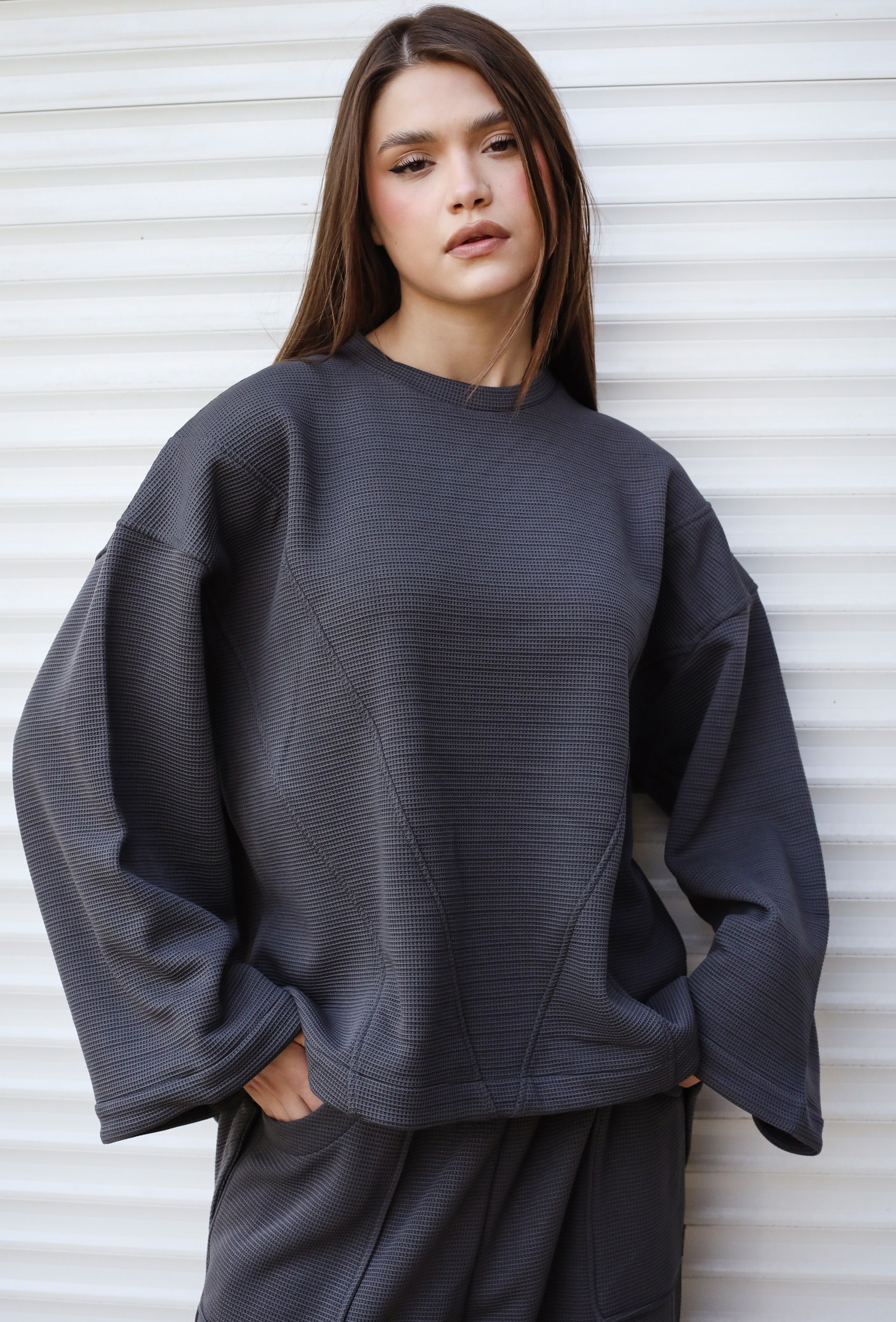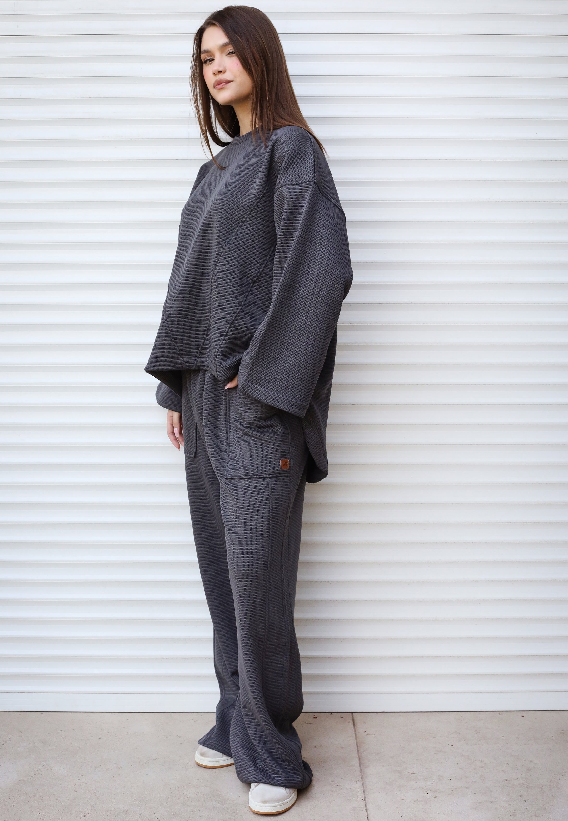 - Neutral stone City Biscuit set for women - modern coordinated outfit perfect for urban style